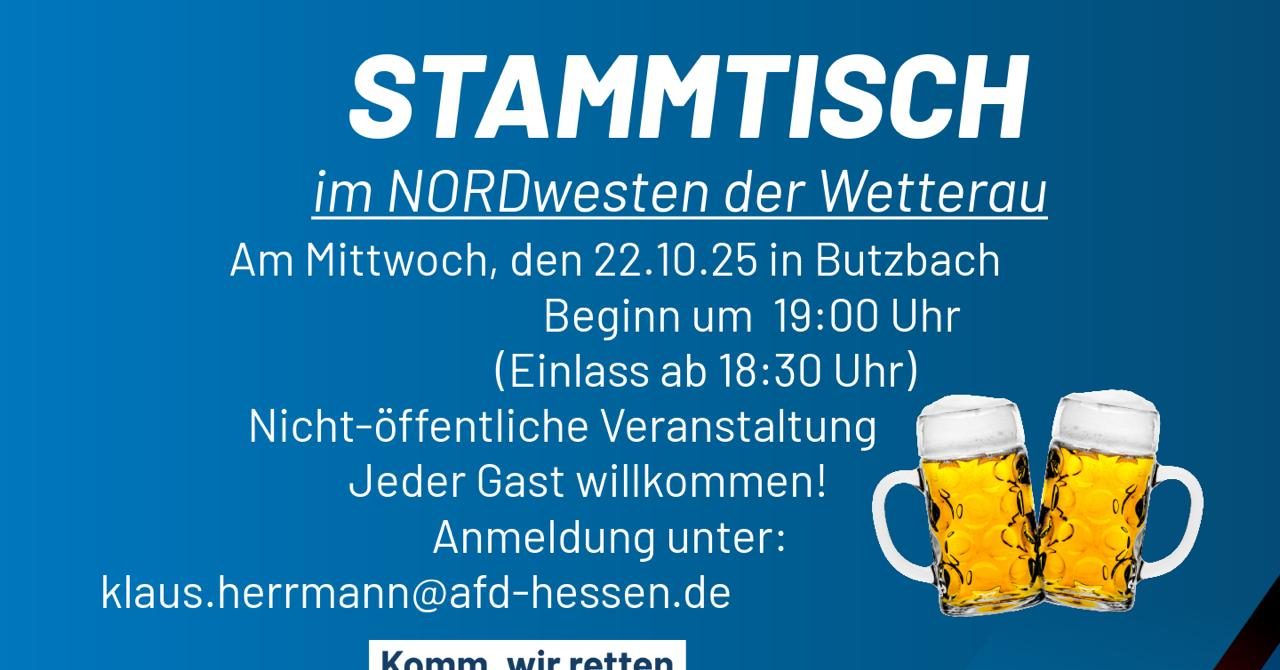 Liebe Freunde, Unterstützer und Interessierte, wir laden Sie herzlich zu unserem nächsten Stammtisch im Nordwesten der Wetterau ein!Nutzen Sie die Gelegenheit, in geselliger Atmosphäre miteinander ins Gespräch zu kommen, Fragen zu stellen und sich über aktuelle Themen aus der Region auszutauschen. 📅 Mittwoch, 22. Oktober 2025📍 Butzbach🕖 Beginn: 19:00 Uhr (Einlass ab 18:30 Uhr) Die […]